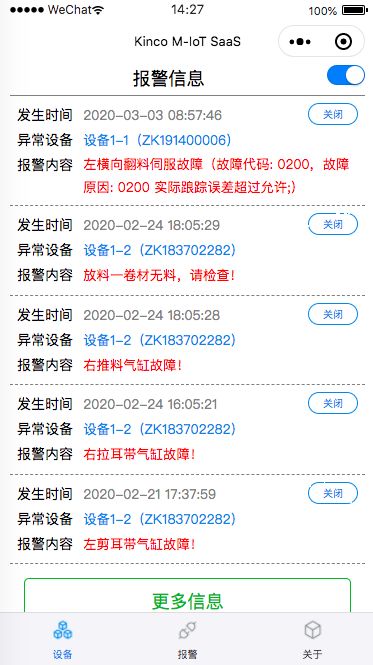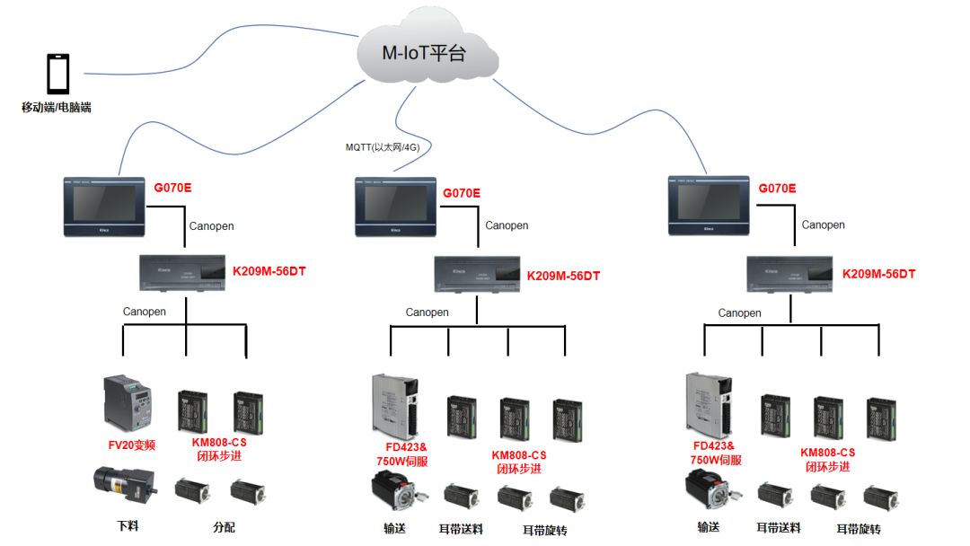 步科口罩機Plus方案,在CANopen總線伺服驅動產品基礎上,迅速升級M-IoT物聯(lián)網(wǎng)遠程運維服務,快速完善了設備報警和維護信息,增加了遠程診斷服務功能,進一步打通了現(xiàn)場、設備商和部件商的溝通渠道,幫助現(xiàn)場人員快速排查故障。