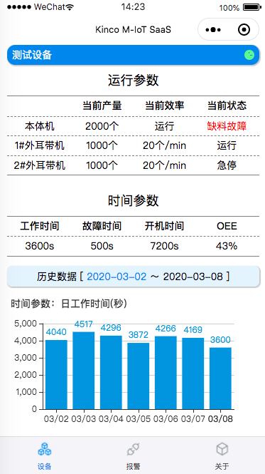 客戶和設備商最擔心的就是設備故障停機,升級版口罩機Plus方案通過互聯(lián)網(wǎng)或4G將整套設備接入云端的M-IoT平臺,讓設備上云,足不出戶就可實現(xiàn)設備遠程診斷,實現(xiàn)故障及時排查與預防性維護。通過對驅動器、電機、變頻器、PLC、HMI的運行數(shù)據(jù)采集,完成對設備運行健康狀態(tài)的監(jiān)控。